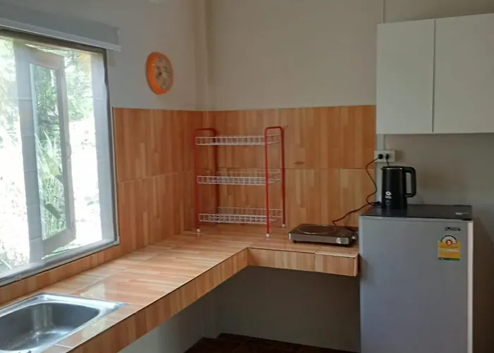 Guests are welcome to cook their own meals in a fully-fitted kitchen of the Baan Tai accommodation.